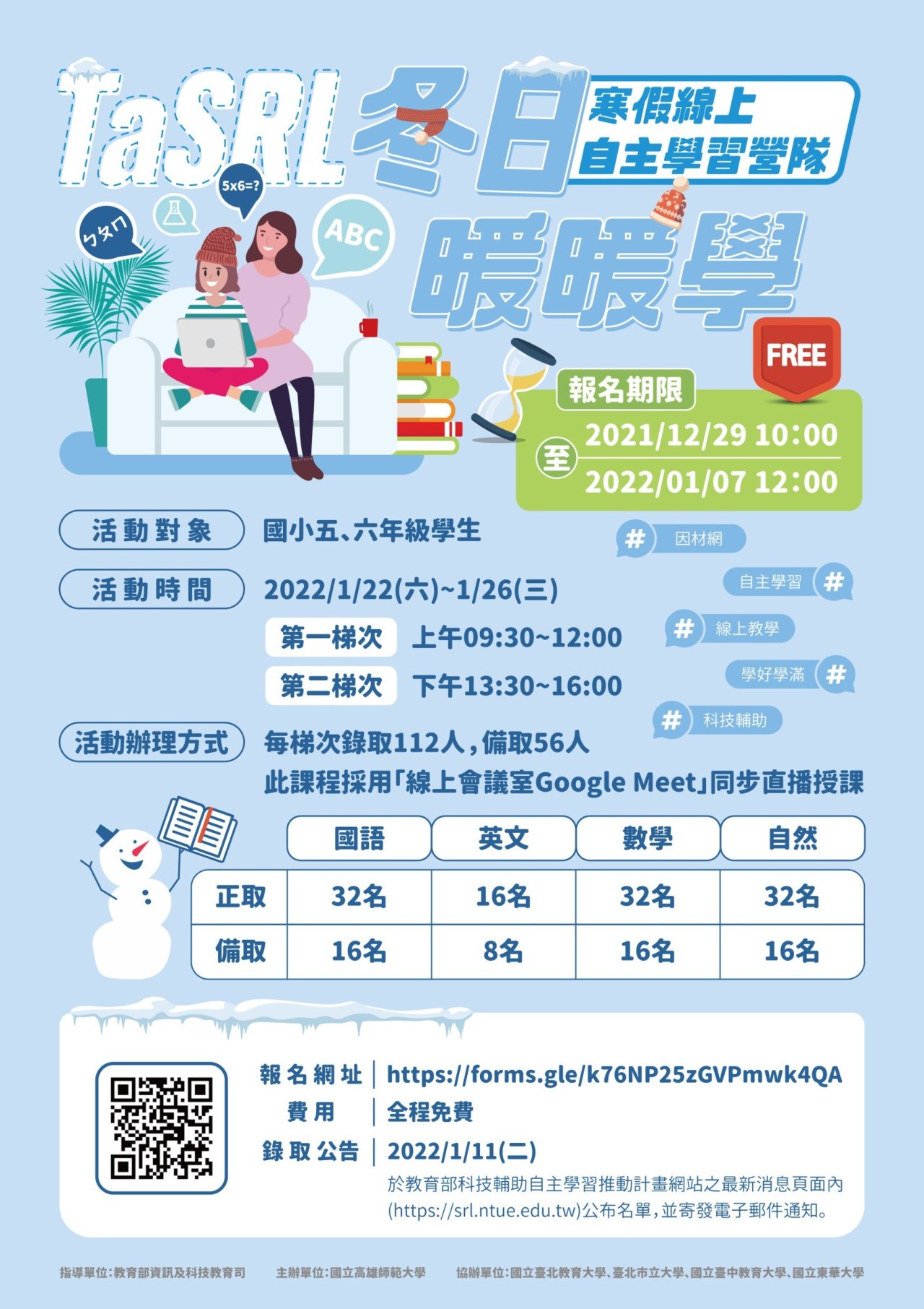 就讓「TaSRL冬日暖暖學」陪你一起暖心過冬,線上學習