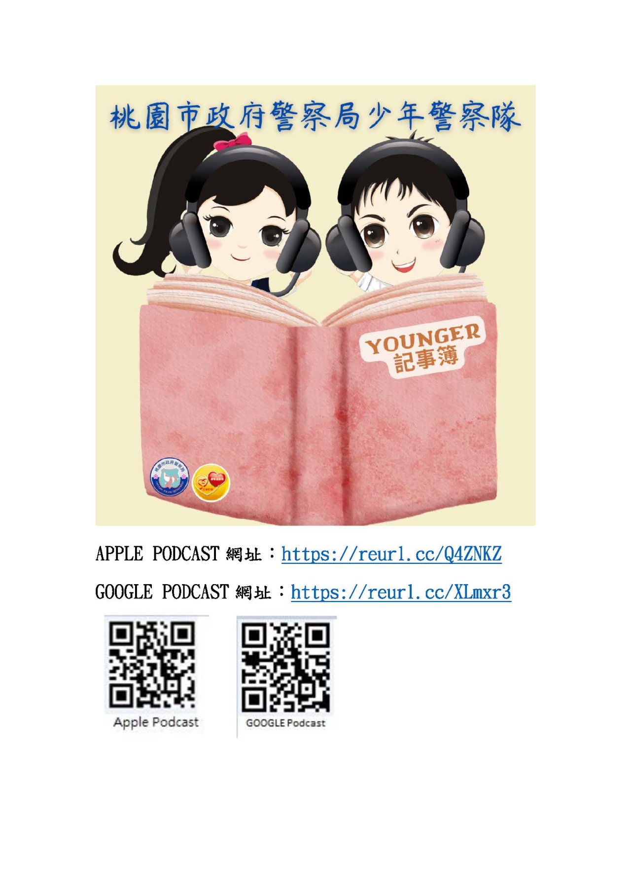 二、「YOUNGER記事簿」PODCAST平台可點選以下平台網址或掃 描QR CODE連結收聽: