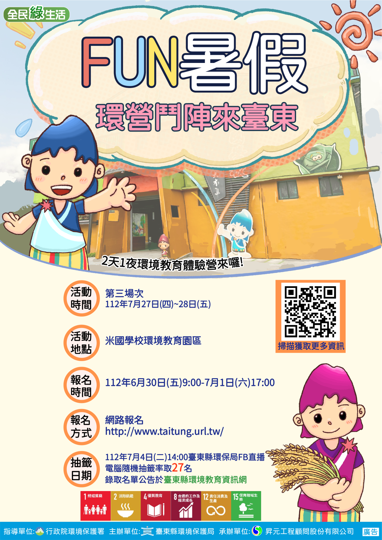 錄取方式:112年7月4日(二)下午14:00 台東縣環保局FB 直播,採電腦隨機抽籤,錄取27名,錄取名單將公告於臺 東縣環境教育資訊網(http://www.taitung.url.tw/)。