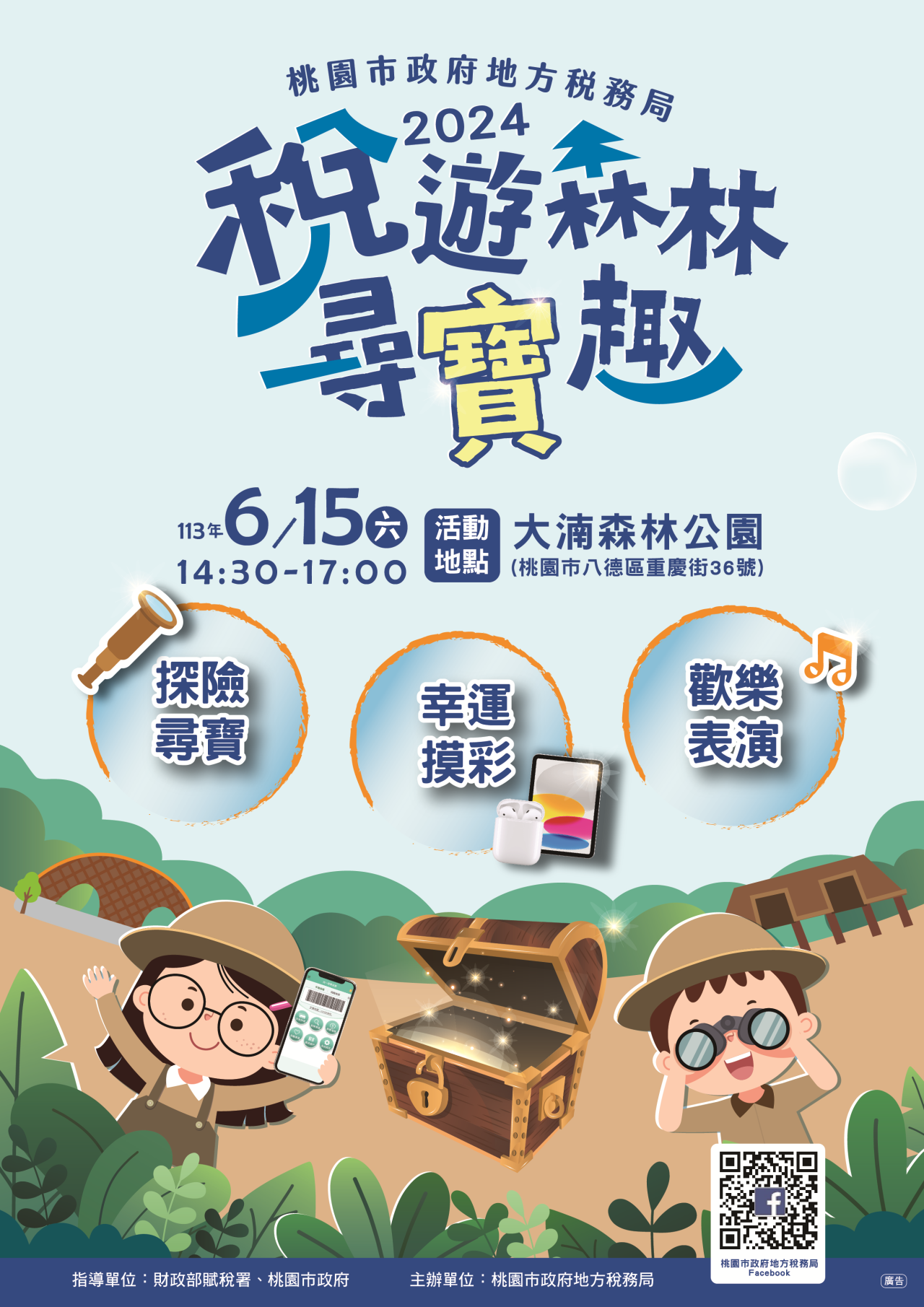 (三)活動內容:以親子一同益智尋寶為主軸,結合舞台表演、摸彩及周邊攤位宣導方式辦理租稅宣導。