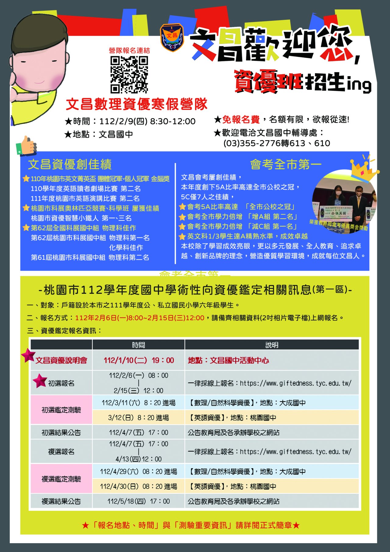 四、有關家長說明會及數理資優營隊訊息及報名資訊,請參閱附件。