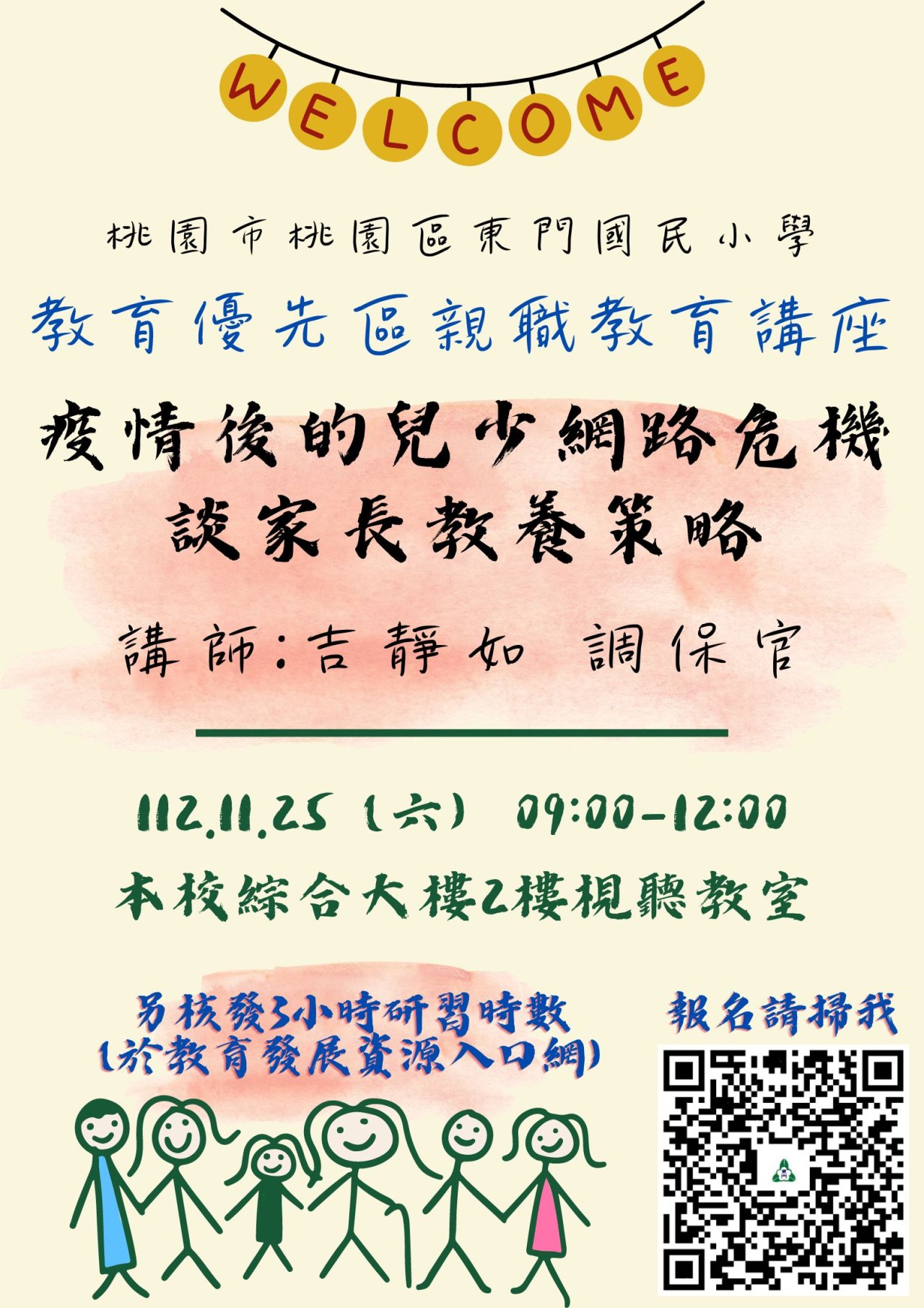 三、 教師請至「桃園市教育發展資源入口網」報名,開課單位「東門國小」,研習活動編號「E00002-230800002」;全