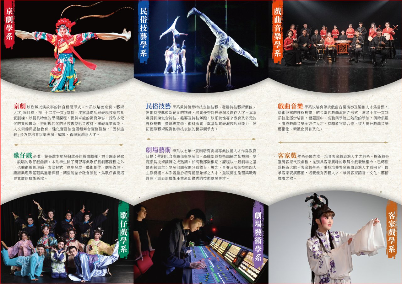 1、招生科別:京劇科、民俗技藝科、戲曲音樂科、歌仔戲科、客家戲科。