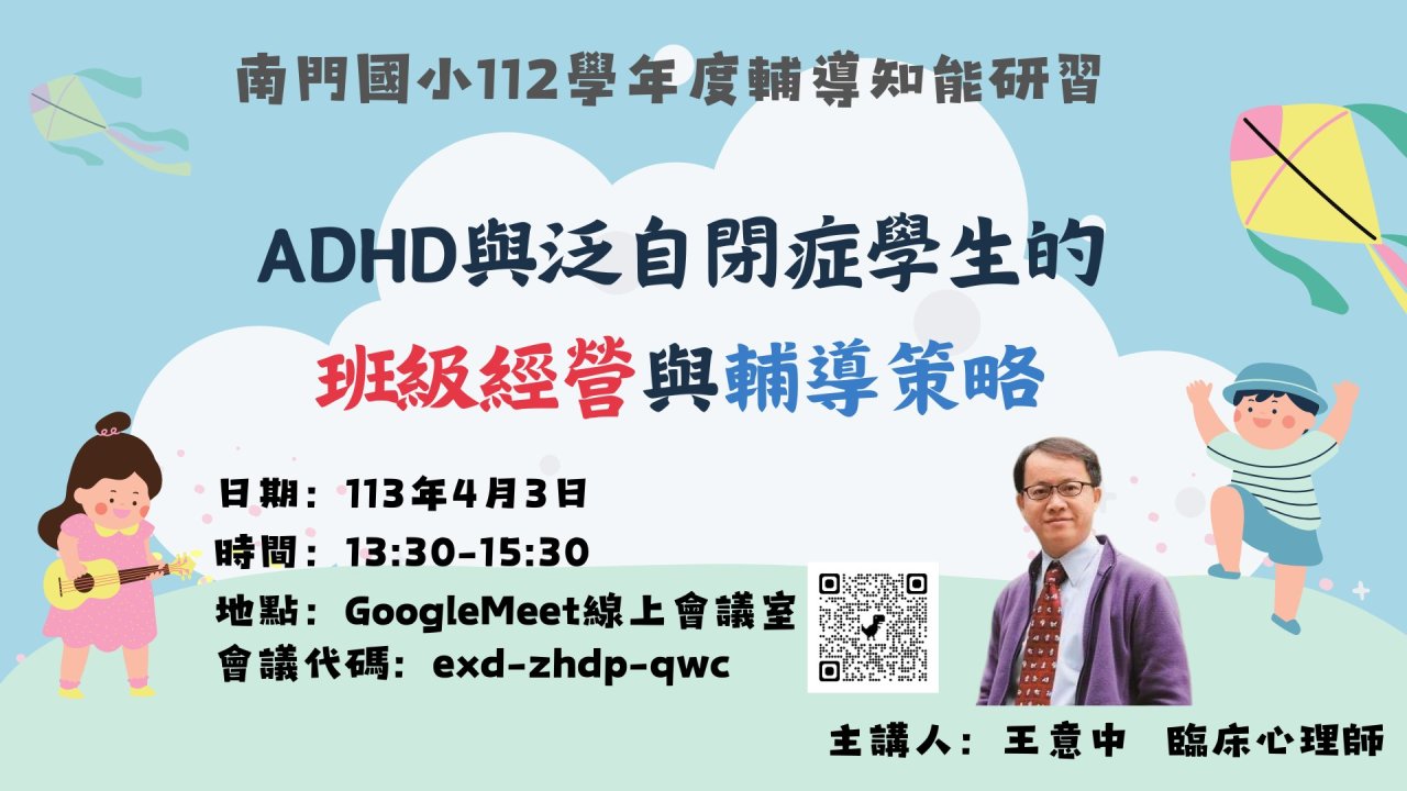 (一)主題:ADHD與泛自閉症學生的班級經營與輔導策略。