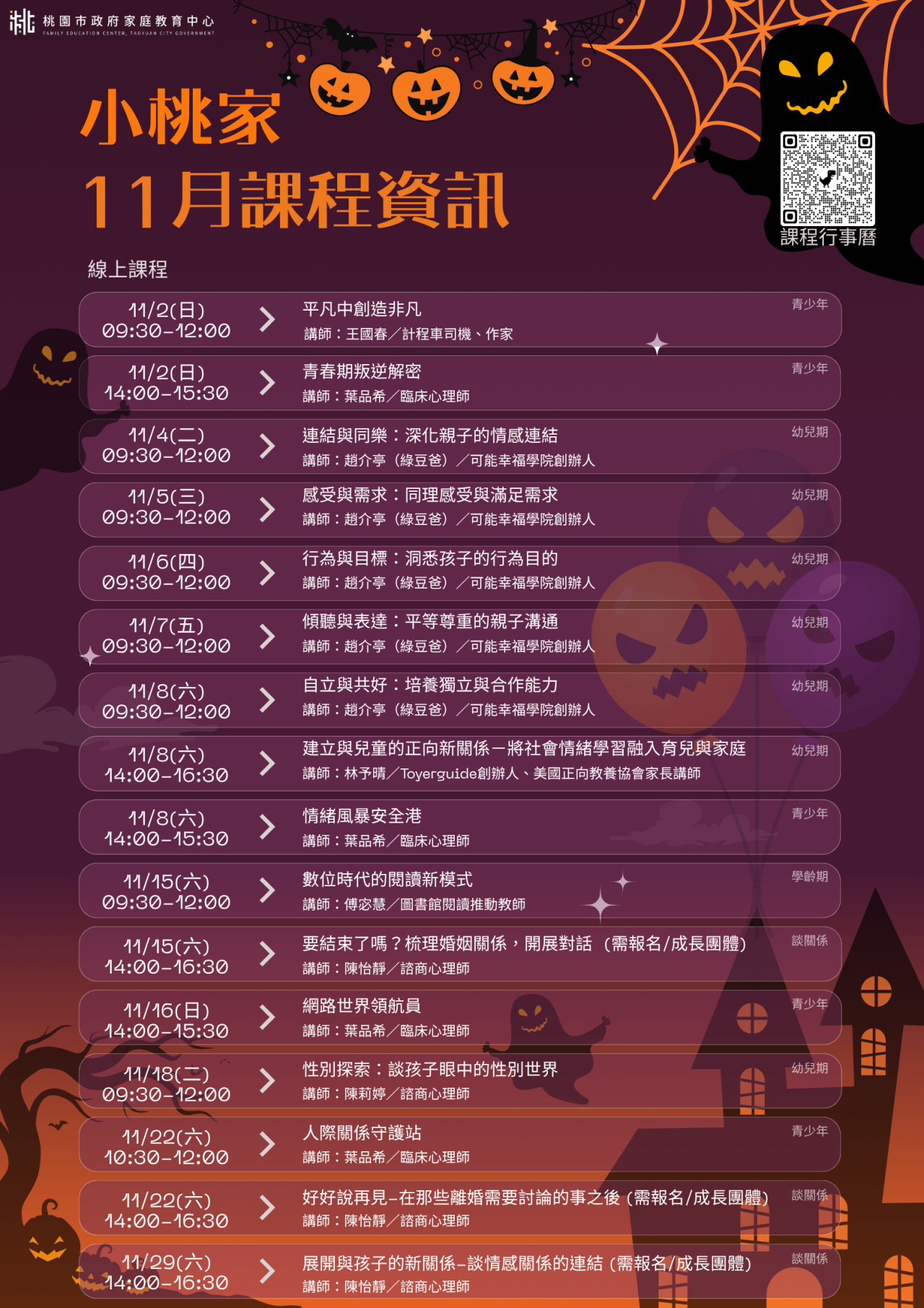 另倘有家庭教育個別化服務需求,可撥打4128185家庭教育諮詢專線,本市市民可申請小桃家線上諮詢室(預約連結: