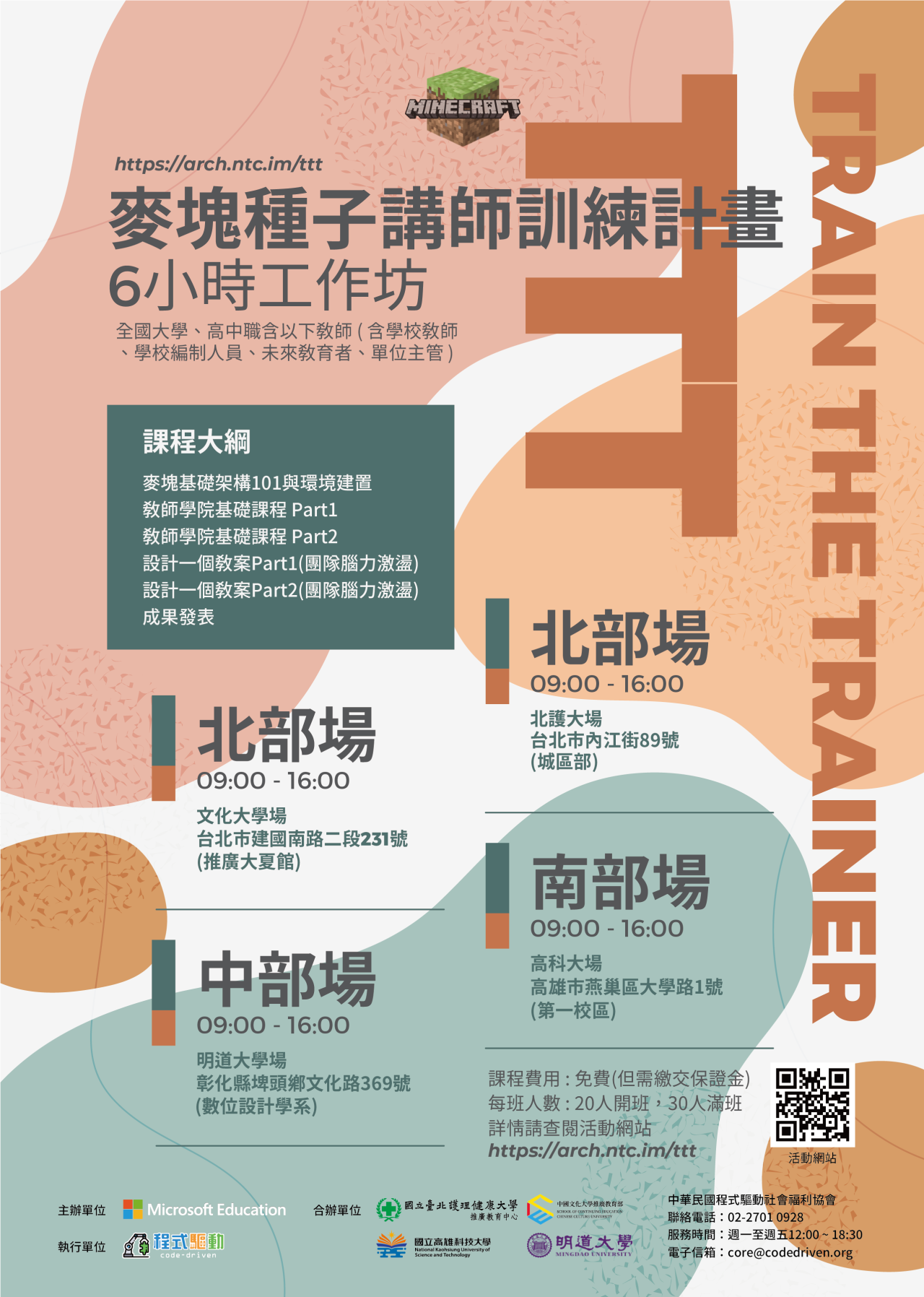 :檢送本校推廣教育中心協助中華民國程式驅動社會福利協 會辦理『麥塊種子講師訓練計畫』事宜,請惠予公告並鼓 勵學校教職員踴躍報名參加,請查照。