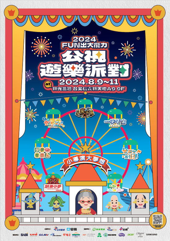 公視第五屆年度兒童品牌活動【FUN出大能力】公視遊樂派對,集結公視、公視台語台、客家台旗下優質兒童節目,今年更有新開台的生力軍小公視新製節目加入一起共襄盛舉。【FUN出大能力】公視遊樂派對,8月9日(五)-8月11日(日)三天,在「新光三越 台北信義新天地A9 9F」 (地址:台北市信義區松壽路9號9F)