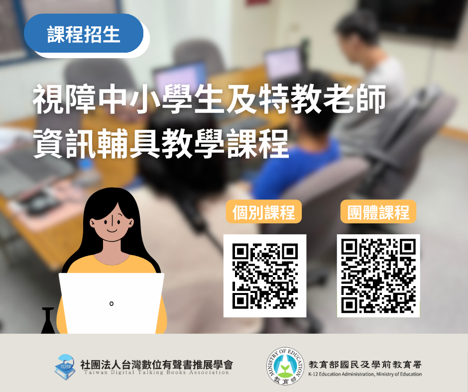 全國1~12年級視障中小學生、家長及特教老師資訊輔具教學課程
